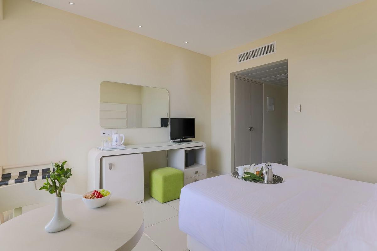 Szobák: minden standard szoba ízlésesen dekoratív, egy hálószobás(~24m2), fürdőszobás, légkondicionálóval, hajszárítóval, vízforralóval, síkképernyős tv-vel, hűtővel, széffel és telefonnal felszerelt. A prémium szoba extra luxust, tágasabb teret (~28m2) és prémium szolgáltatásokat kínál, felszereltségében extra kényelmi szolgáltatások találhatók, mint például: fürdőköpeny, szobapapucs és Nespresso kávéfőző gép. A szobákhoz erkély vagy balkon tartozik szárazföldre, korlátozottan tengerre néző, illetve tengerre néző kilátással.